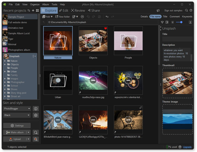 - Create & upload with the jAlbum software or Online jAlbum (our online service)