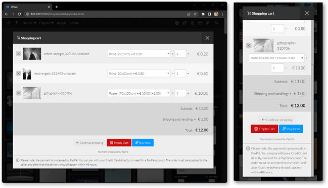 * Commercial use - Use jAlbum to promote your company or other commercial activity. You may also activate the shopping cart of certain skins to sell photos or other items from your web galleries.